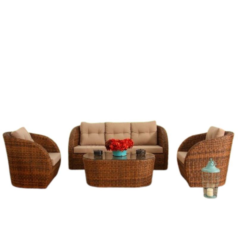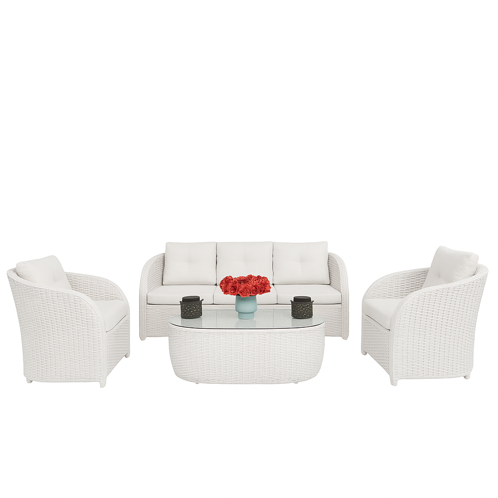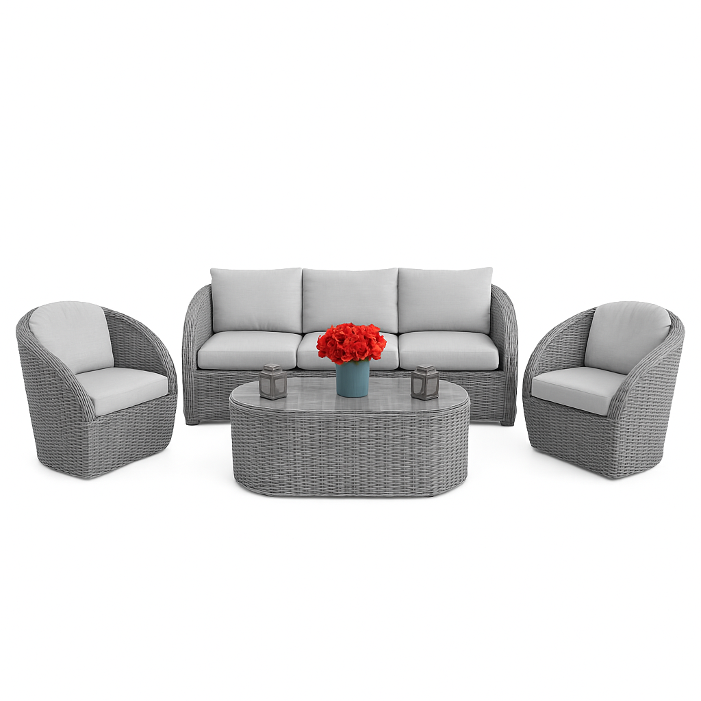 The Alpine Dream Rattan (5 Seater Sofa) Lounge Set offers a cozy, nature-inspired retreat with a three-seater sofa and two single seater sofa , all crafted with a honey-toned rattan weave that blends seamlessly with the natural surroundings. The taupe cushions ensure comfort, while the central coffee table with a glass overlay adds a touch of elegance, making this set perfect for relaxing in style.