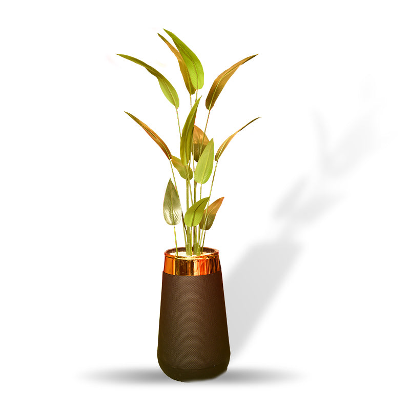 Elevate your indoor or outdoor décor with the Aurum Deco Fiber Planter, a premium design piece crafted to blend elegance and functionality. This contemporary tall planter features a rich textured matte body paired with a stunning golden metallic rim, making it an eye-catching element for luxury interiors.