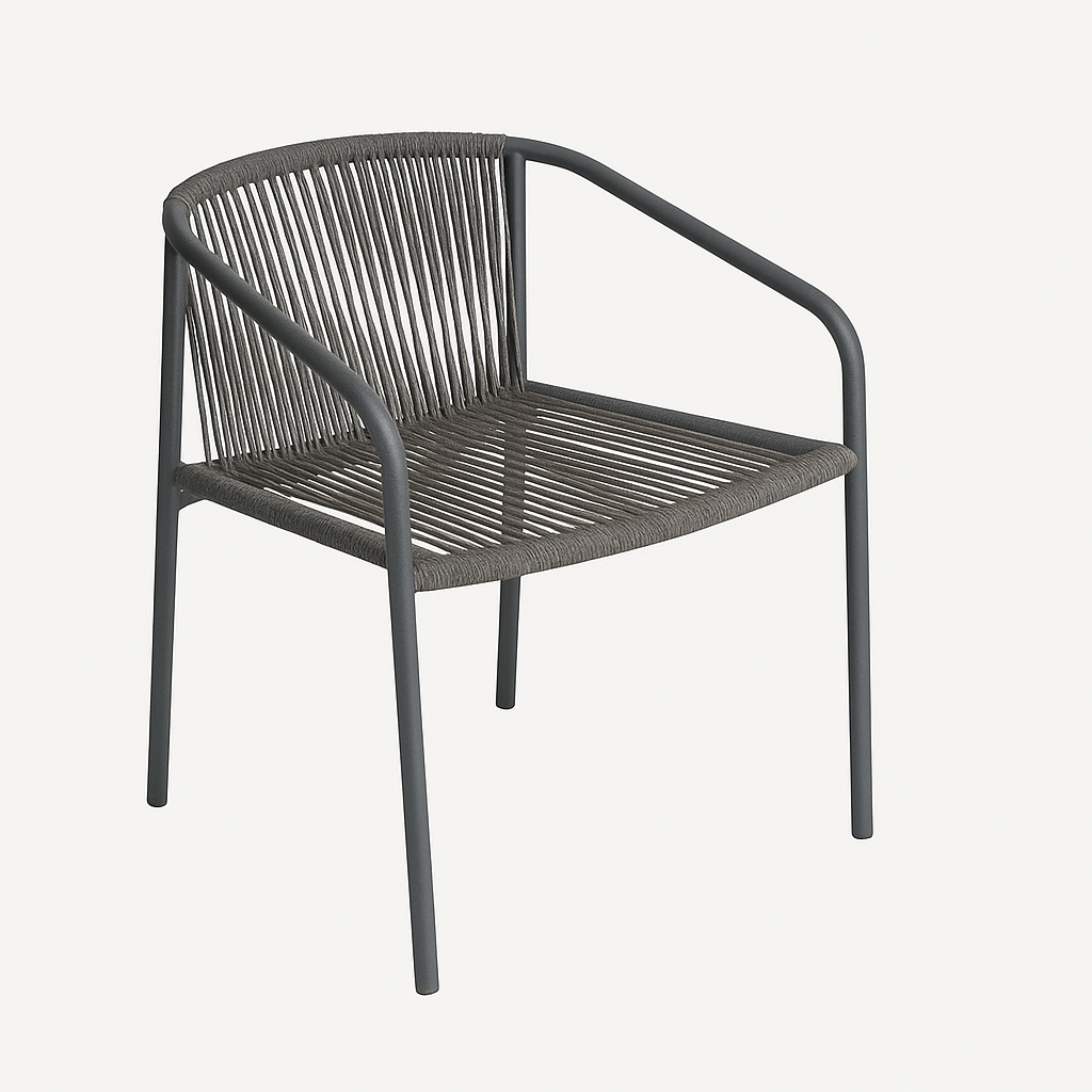 The BreezeLite Outdoor Rope Dining Chair combines contemporary aesthetics with everyday functionality. Featuring a sleek, powder-coated metal frame and tightly woven rope seat and backrest, this lightweight yet sturdy chair is perfect for patios, cafés, balconies, or indoor/outdoor dining spaces. Its clean lines and neutral tones make it a versatile choice for modern minimalist environments.