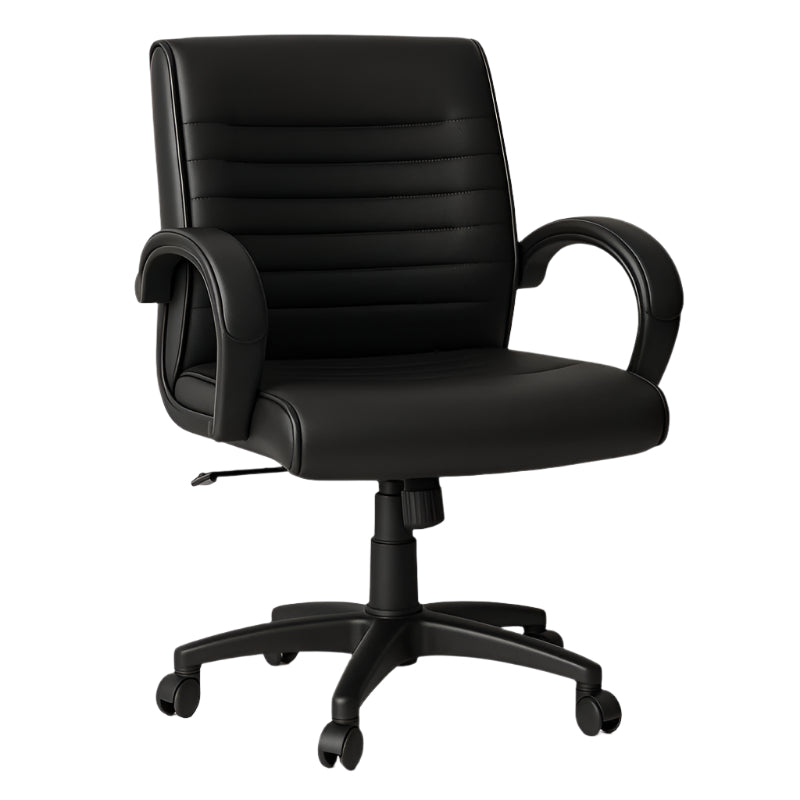 Add timeless sophistication and all-day support to your workspace with the EliteComfort Mid-Back Executive Office Chair. Upholstered in sleek black leatherette, this chair features a contoured backrest with horizontal stitching and thickly padded curved armrests, offering superior comfort and executive appeal.