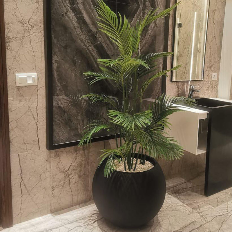 Transform any indoor space with this Luxury Round Matte Black Fiber Planter, paired with a realistic artificial palm for effortless elegance. Perfect for high-end interiors, bathrooms, hotel suites, or reception areas, this planter makes a bold yet refined statement.