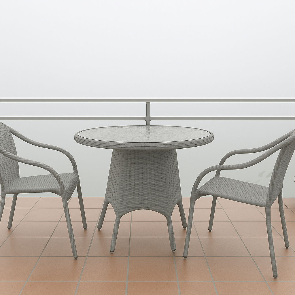 Create a cozy corner on your balcony or patio with this charming bistro set, featuring two natural-hued rattan chairs and a round mosaic-topped table. Ideal for morning coffees or evening chats, the curved-back chairs offer comfort and style in compact spaces.