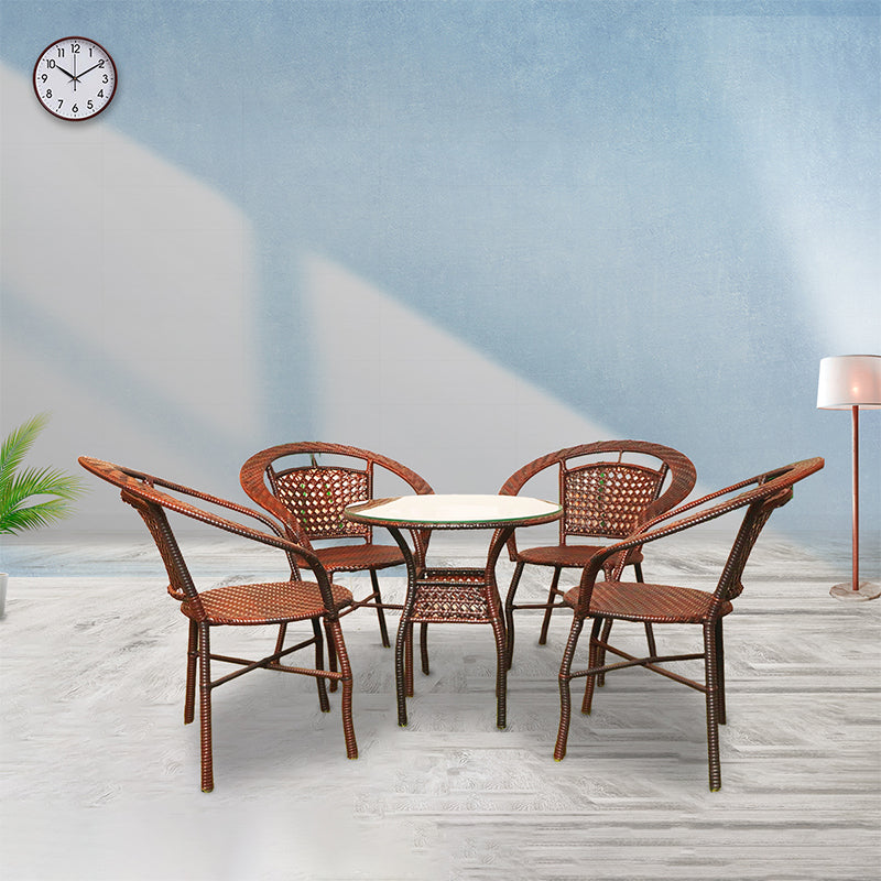 Timeless and tasteful, the Roma Rattan Set brings coastal charm and modern comfort to your outdoor spaces. Featuring 4 richly textured tan rattan chairs and a 24" round low-profile coffee table, this set is ideal for breezy patios, rooftops, and beachside decks. Its sturdy yet lightweight design makes it easy to reposition for sun or shade.