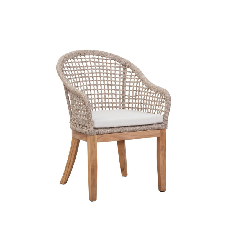Bring a relaxed, coastal-inspired charm to your indoor or outdoor space with the Seaside Woven red meranti wood Armchair. Crafted with a natural red meranti wood base and a handwoven rope backrest, this chair combines durability with timeless design. Its rounded barrel silhouette offers both support and elegance, while the included plush seat cushion ensures lasting comfort whether you're dining alfresco or lounging in a sunroom.