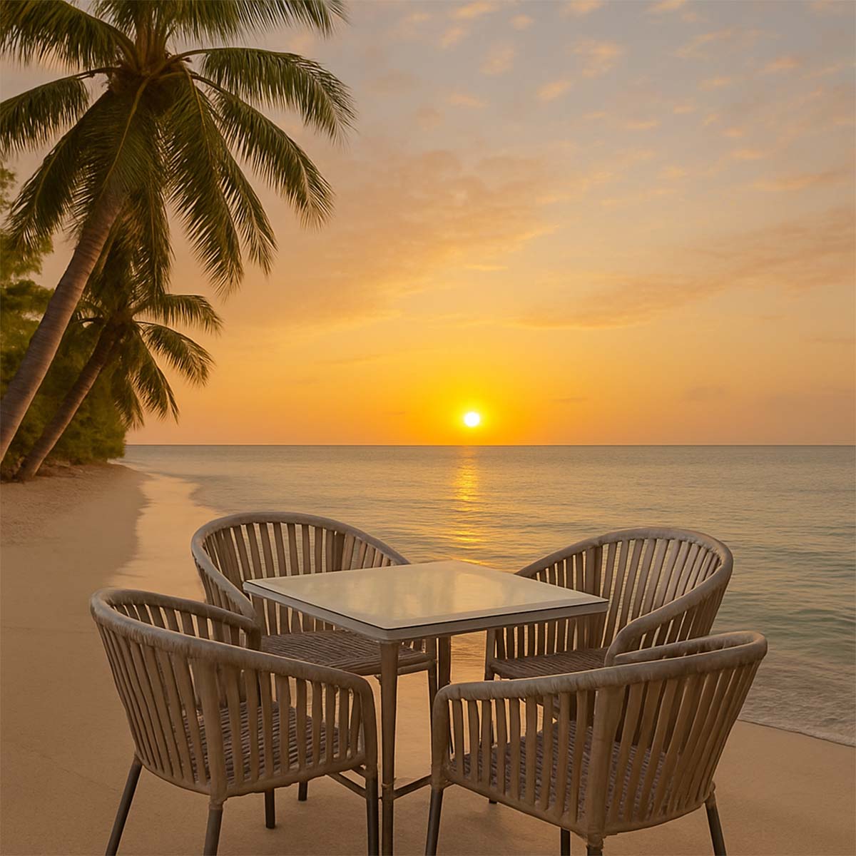 Transform your indoor or outdoor dining space with the elegant Sun Chair Set, crafted to combine sophisticated design with long-lasting durability. This stylish set features handwoven rope detailing on a sturdy iron frame, offering both visual appeal and structural strength. The centerpiece is a sleek, square glass top table, perfectly sized for casual coffee moments or intimate dinners.