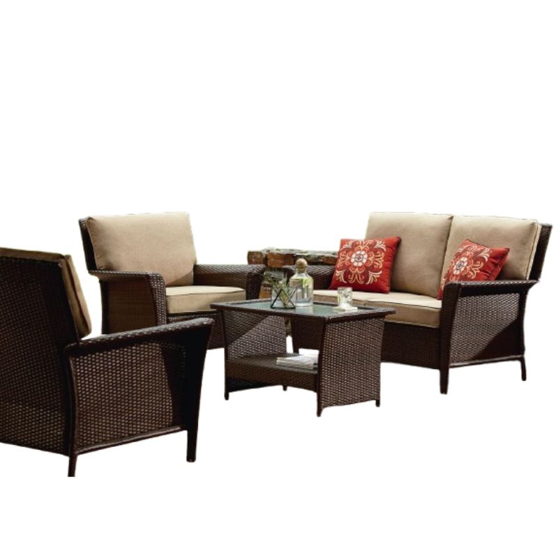 Embrace the warmth of autumn with the Sunset Bay Outdoor Living Set , featuring deep brown rattan and cushions. The set includes a loveseat, two single seater sofa and a glass-top coffee table. Perfect for relaxing outdoors all year long.