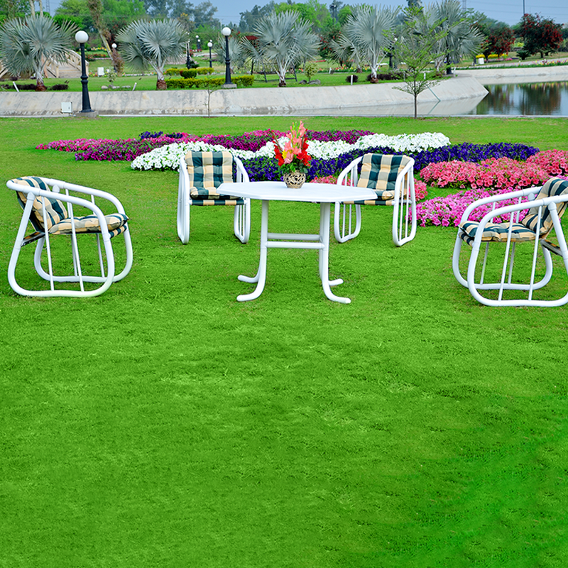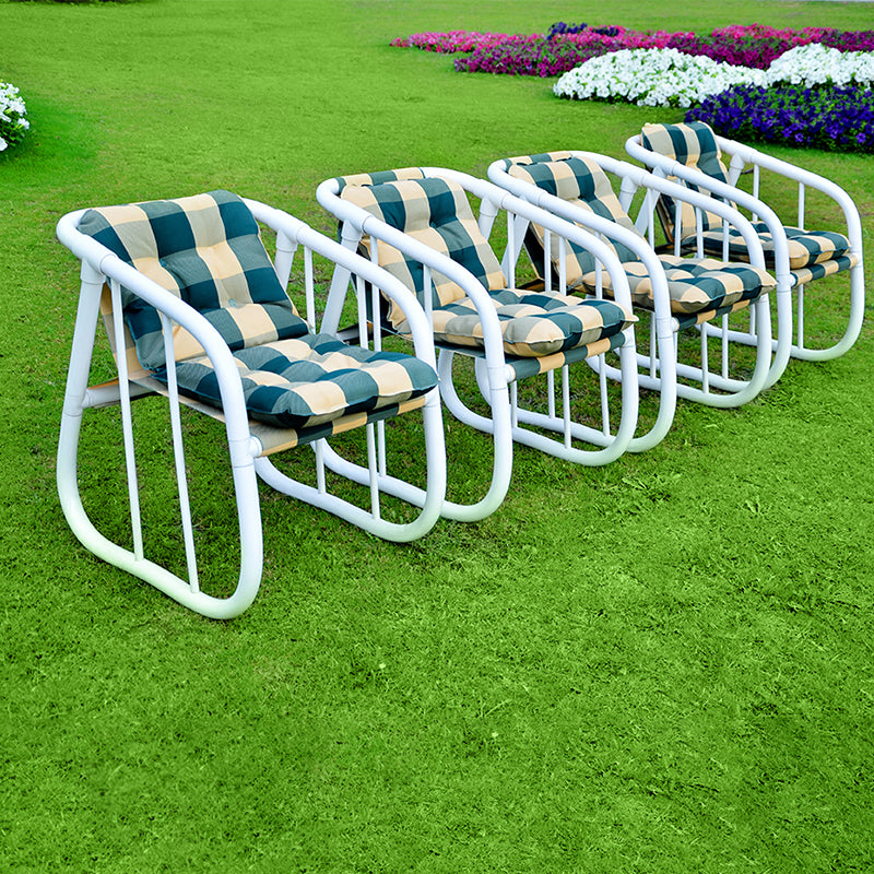Enhance your outdoor living with this stylish and durable 5-piece garden furniture set, consisting of four cushioned chairs and a 36" round dining table. Designed with comfort and elegance in mind, each chair features a smooth curved frame and checkered UPVC-coated fabric cushions that stay comfortable and visually appealing even with regular use. The lightweight, weather-resistant construction ensures this set remains resilient through every season. Whether for garden brunches, backyard dinners, or relaxing with friends, this set combines luxury, practicality, and timeless outdoor charm.